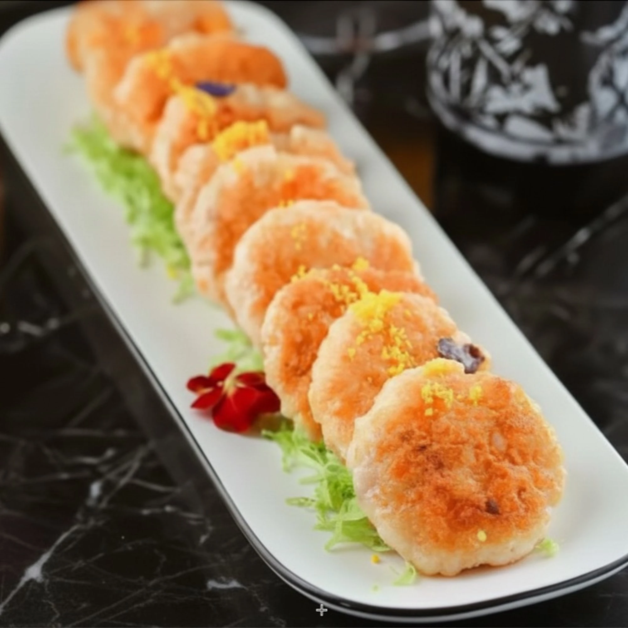 Genießen Sie unsere handgemachten Garnelenküchlein, eine Kombination aus knuspriger Textur und zartem Garnelen.
