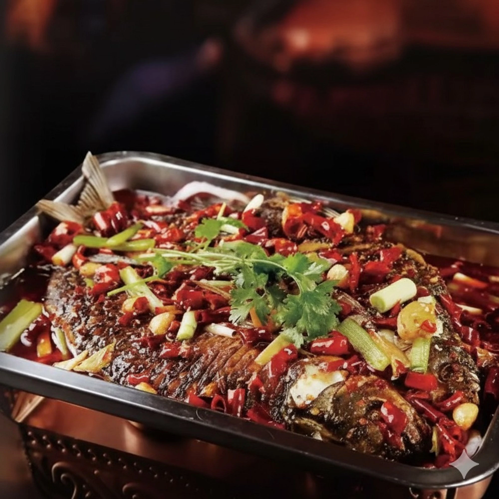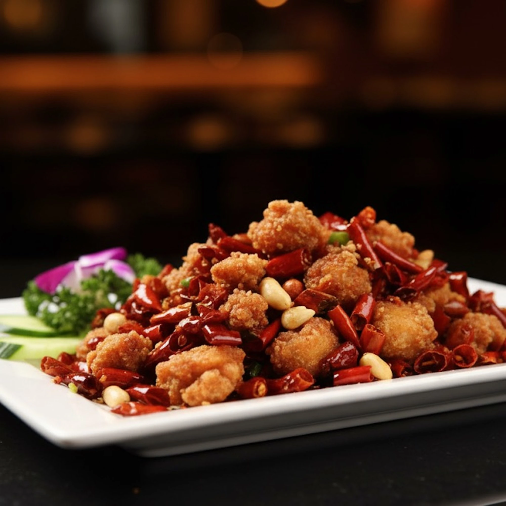 Erleben Sie unser Chongqing scharfes Hähnchen – eine Hommage an die Sichuan-Küche. Zarte Hähnchenstücke, umhüllt von einer feurigen Mischung aus Chilis und Gewürzen.