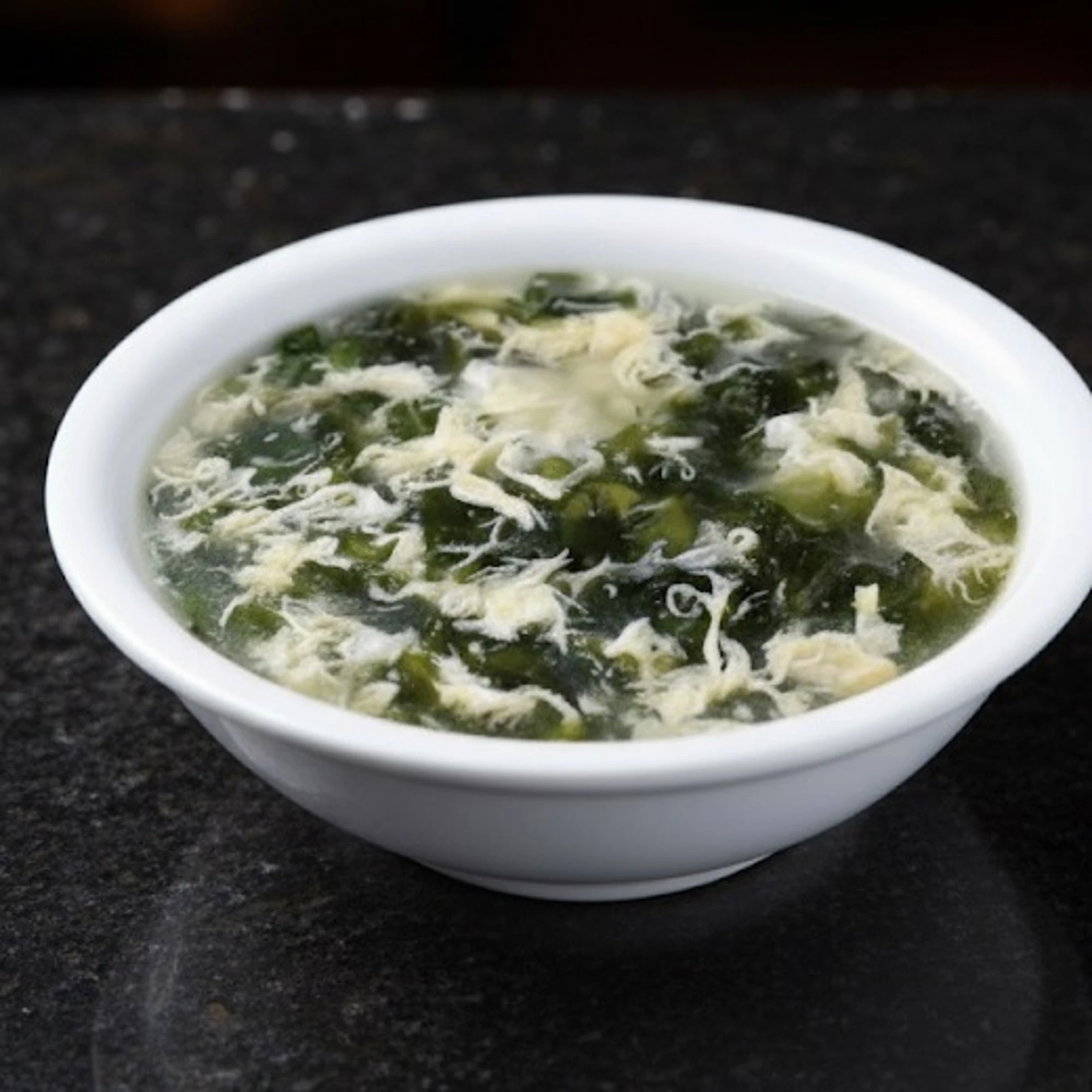 Eine leichte und doch reichhaltige Brühe, gefüllt mit frischem Seetang und zarten Eierblumen, bietet einen beruhigenden und nahrhaften Genuss